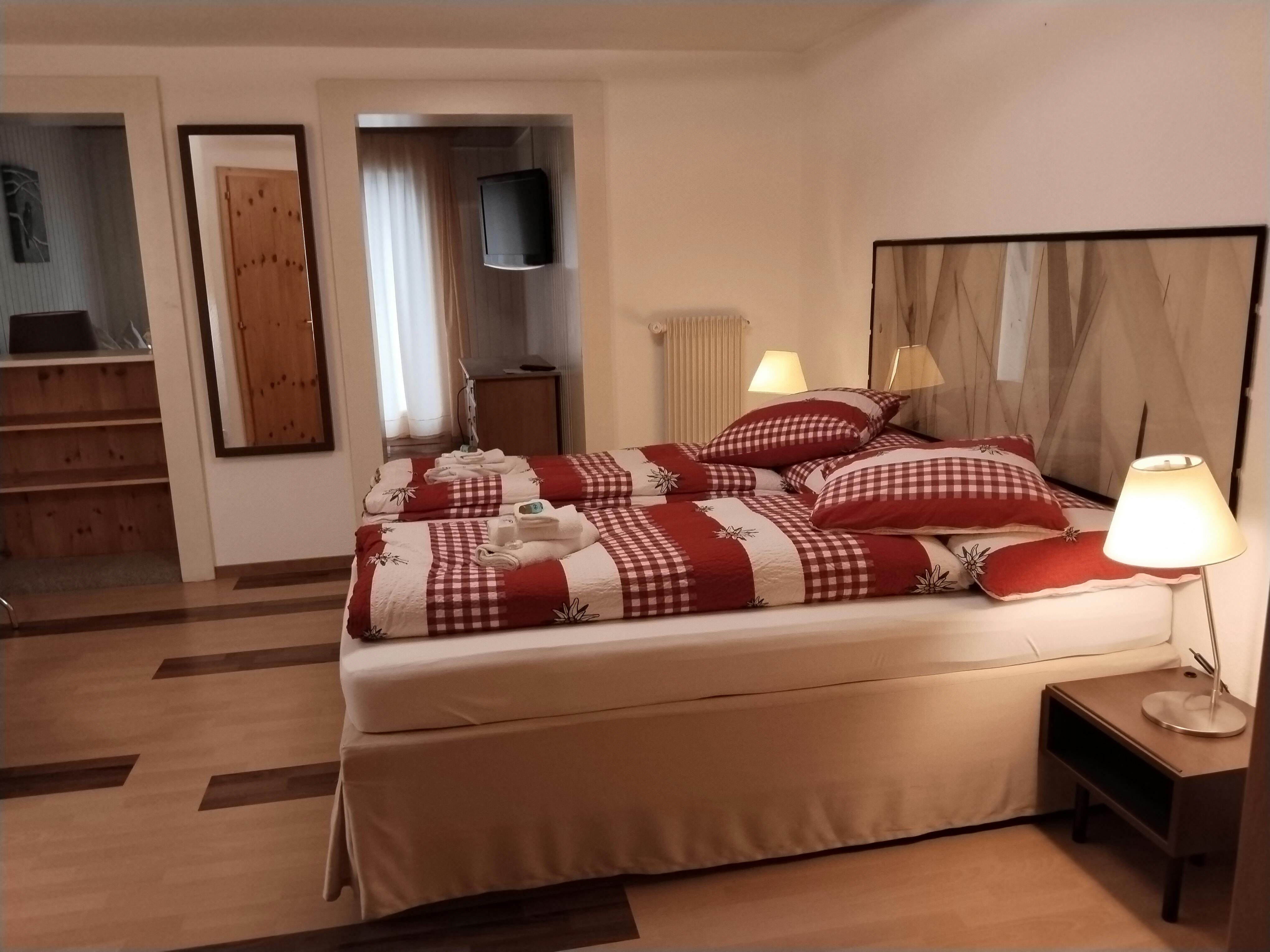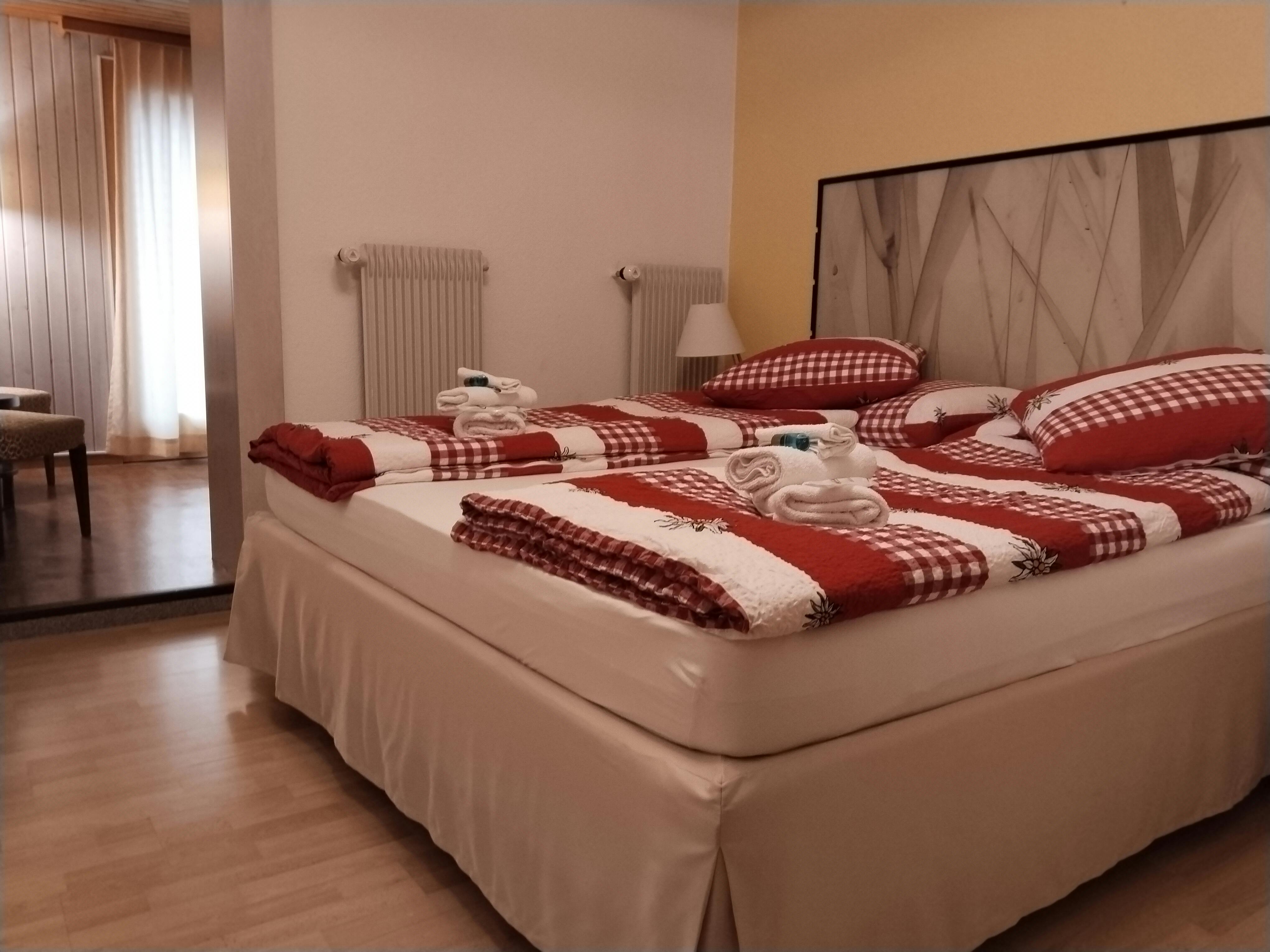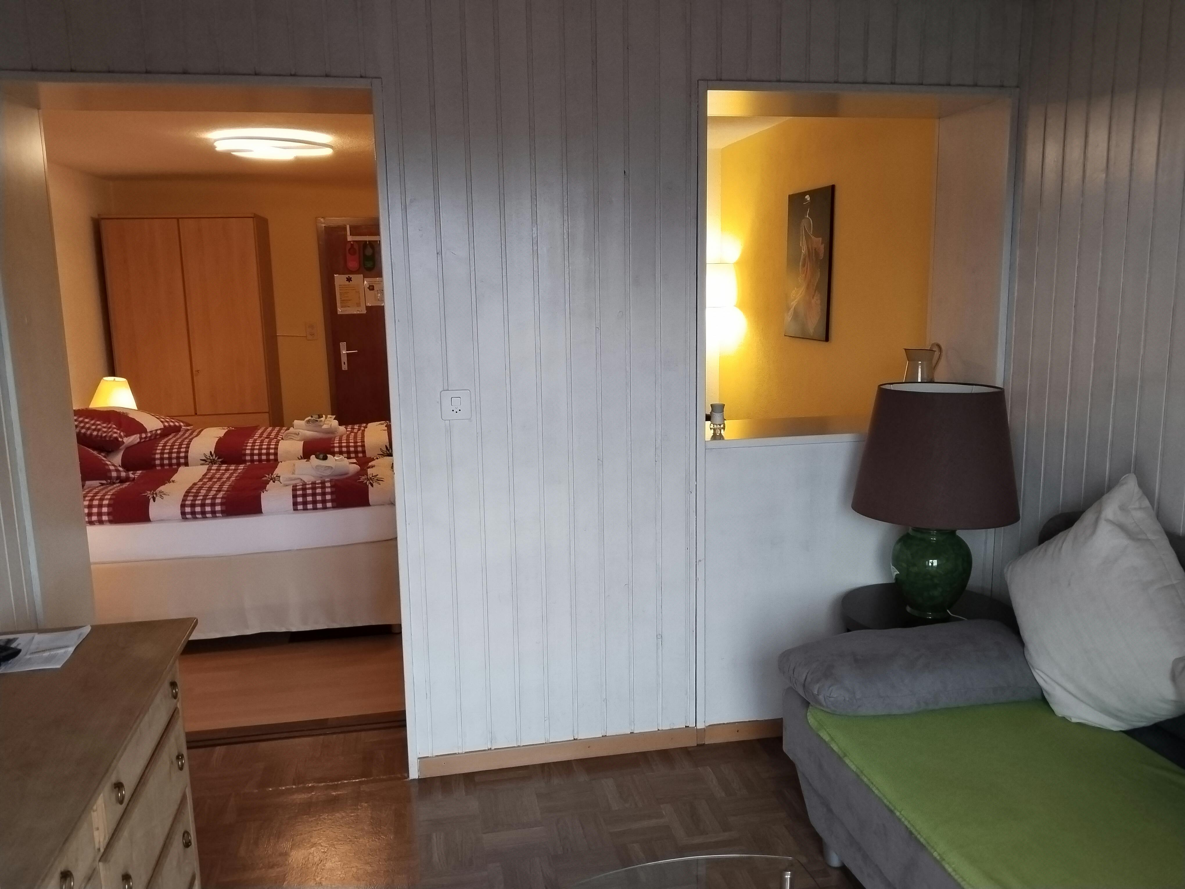 The accommodation is equipped with a double bed and a small lounge with a sofa (bed).